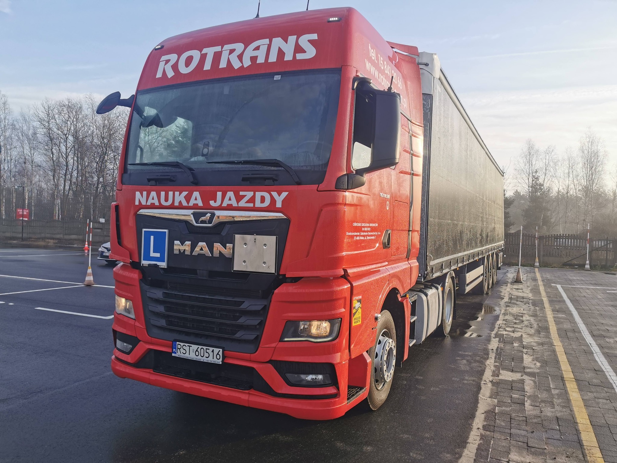 Szkolimy na MAN TGX 18.510 z naczepą 3 osiową SCHMITZ, udostępniamy nasz samochód i przyczepę na egzamin w WORD Tarnobrzeg.